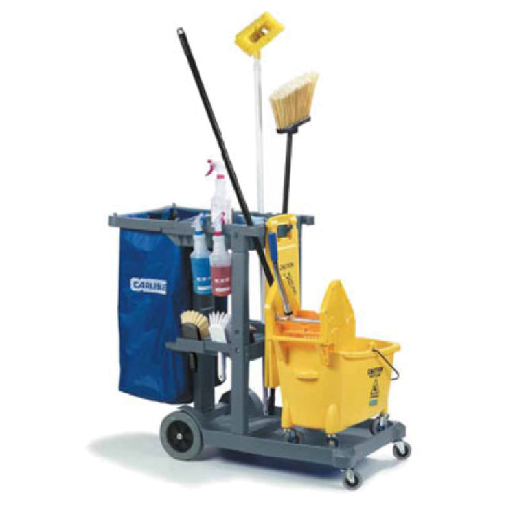 Top commercial janitor carts provide durable, impact-resistant storage for high-volume cleaning workflows, ideal for healthcare, hospitality, and institutional environments. Carlisle JC1945S23, a rugged impact-resistant polyethylene model, supports efficient supply transport and waste management for moderate to high workloads, offering reliable mobility and organizational features designed for busy commercial facilities.