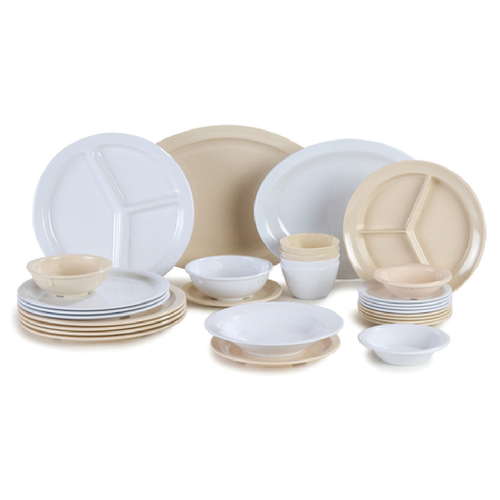 Designed for moderate throughput foodservice settings, the Carlisle KL20102 high-durability plastic plate provides stable, dishwasher-safe service. Built with a precision 7-1/4-inch diameter, this NSF-certified melamine dish is ideal for cafeterias, restaurants, and catering venues requiring long-lasting, easy-to-clean tableware. Its construction and design support efficient workflows and reliable presentation.