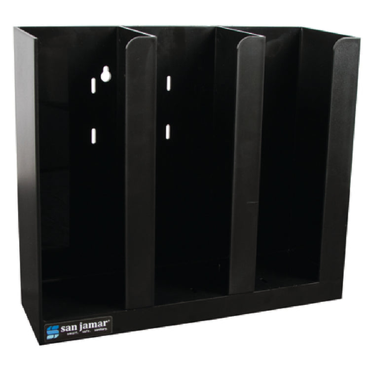 The Carlisle PCL3ADJ San Jamar Portion Cup and Lid Organizer is a commercial-grade storage solution designed for efficient organization within busy foodservice environments. Crafted by CFS Brands, this 10" x 11-1/2" x 3-3/4" open-face organizer features four sections with removable dividers, accommodating lid or cup rim diameters of 2" to 3". Its sturdy construction is optimized for countertop or wall mounting, with non-slip rubber feet ensuring stability during daily operations. This product enhances workflow by keeping portion cups and lids neatly arranged, reducing search time, and promoting sanitation.