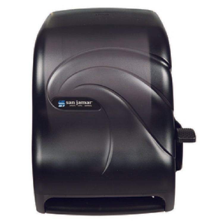 The Carlisle T1190TBK San Jamar Oceans® Paper Towel Dispenser offers a reliable, wall-mounted design with a lever handle for ease of single-sheet dispensing. Its high-density plastic construction ensures durability in high-use areas, while the compact footprint allows seamless integration into various kitchen or restroom setups. Designed for standard 8-inch wide rolls with an 8-inch diameter, it simplifies paper towel replenishment and maintenance within fast-paced foodservice operations. This model supports efficient workflow, reducing waste and promoting hygiene through touchless handling by staff. Its streamlined design and precise dimensions make it a suitable choice for moderate-to-high throughput environments requiring consistent paper product access.
