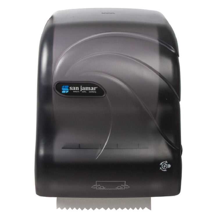Carlisle T7490TBK 12-3/8 Inch Touchless Mechanical Paper Towel Dispenser Black Plastic with Lock