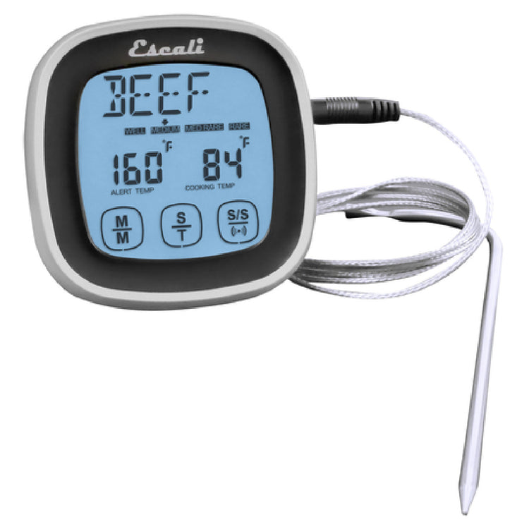 The Carlisle THDGTMTS San Jamar Escali Probe Thermometer & Timer Touch Screen is a professional-grade food temperature monitoring device designed for commercial kitchens. This advanced probe thermometer features a precise temperature range from -4° to 482°F (-20° to 250°C) and incorporates a 7-1/4" stainless steel probe for accurate core temperature measurement. Its 3" x 3" x 1" high-resolution touch screen display provides clear interface navigation, while the 40" oven-safe cord ensures flexible placement during cooking processes. Engineered for durability and ease of maintenance, it supports preset cooking temperatures and temperature alerts—optimized for foodservice environments that require strict temperature control and data recall capabilities.