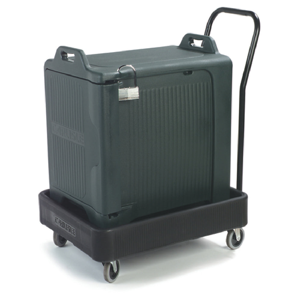 The Carlisle XDL3000H03 Carlisle Cateraide™ Pan Carrier Dolly With Push Handle is a commercial-grade transport solution designed for foodservice operations requiring efficient and durable meal presentation and transportation. Manufactured by CFS Brands, this polyethylene platform carrier features an integrated push handle for ease of maneuvering in busy kitchens. Capable of holding up to two stacked XT3000R pan carriers, it optimizes workflow by reducing handling time, with robust 4-inch non-marking swivel casters providing omni-directional movement on various surfaces. Constructed in the USA, this NSF-certified, BPA-free dolly measures 39.13 inches in height, 28.75 inches in width, and 22.38 inches in depth, weighing 29 pounds for stability and ease of transport.