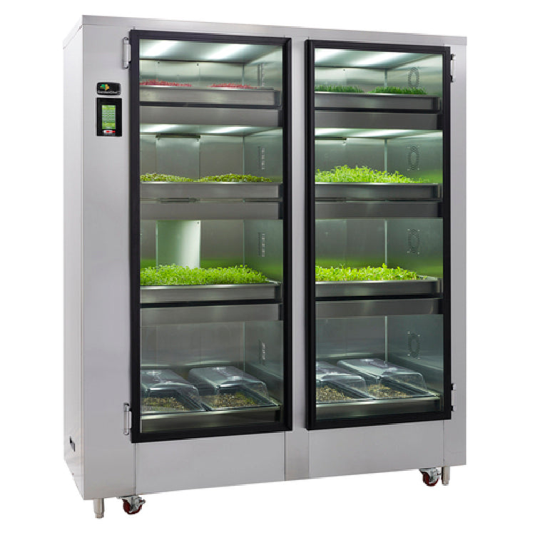 The Carter Hoffmann GC42 Gardenchef™ Herb & Microgreen Growing Cabinet is a commercial-grade hydroponic cultivation system designed for precise, automated growth of herbs and microgreens. This food industry professional equipment features an advanced lighting setup, integrated watering, and real-time pH & TDS monitoring. Its two-door stainless steel construction houses eight independent growing zones, optimized for consistent, high-quality crop production in restaurant kitchens, culinary labs, or microgreen farms. The model GC42’s technical specifications include touchscreen digital controls for seamless operation, 3/8" NPT drain and fill connections, and power compatibility with 120V/60Hz single-phase circuits, making it an ideal solution for consistent microgreen and herb cultivation in commercial foodservice environments.