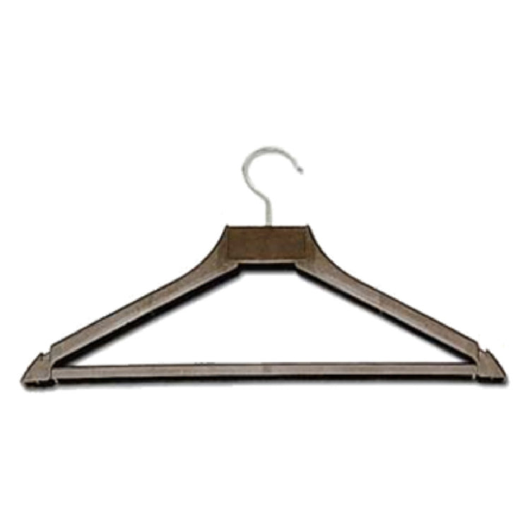 The Central Specialties 1160 Hanger Open Hook Strap Notch is a professional-grade clothing hanger designed for commercial foodservice environments requiring durable garment storage solutions. Constructed from high-quality plastic, this open hook hanger features a strap notch and trouser bar, making it suitable for organizing uniforms, chef coats, or staff apparel with precision. With a capacity aligned for moderate workload applications, it ensures reliable support for daily use in hospitality, catering, and institutional kitchens. Its robust design simplifies staff workflow and maintains garment integrity, while its brown color enhances visibility and coordination within busy service settings. The 1160 model measures a standard size with a weight of 18 lbs per case, packed in units of 72 for scalability and convenience in large-scale operations.