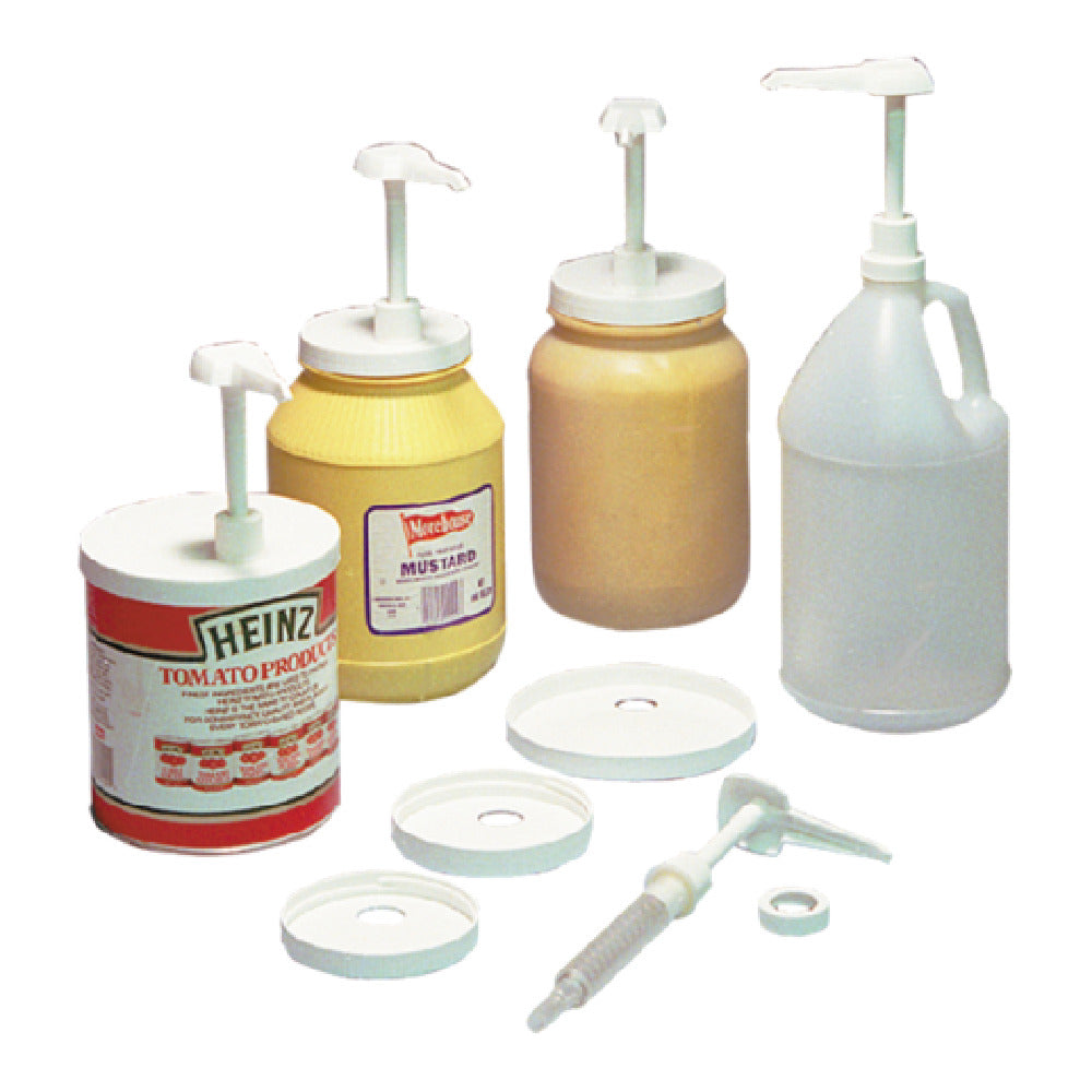 The Carlisle 38310 Carlisle Standard Pump Kit is a commercial-grade condiment syrup dispensing solution designed for foodservice operators seeking reliable, precise portion control. This pump assembly includes a durable, white plastic standard pump with a 5" trimmable dip tube, ideal for consistent syrup and condiment delivery in hospitality, quick-service, and institutional settings. Engineered to optimize workflow efficiency, it provides a straightforward solution for portioning beverages and condiments with accuracy. Its compact design and compatibility with various lid sizes make it suitable for installation in condiment stations and beverage dispensers, ensuring minimal maintenance and long-term performance.