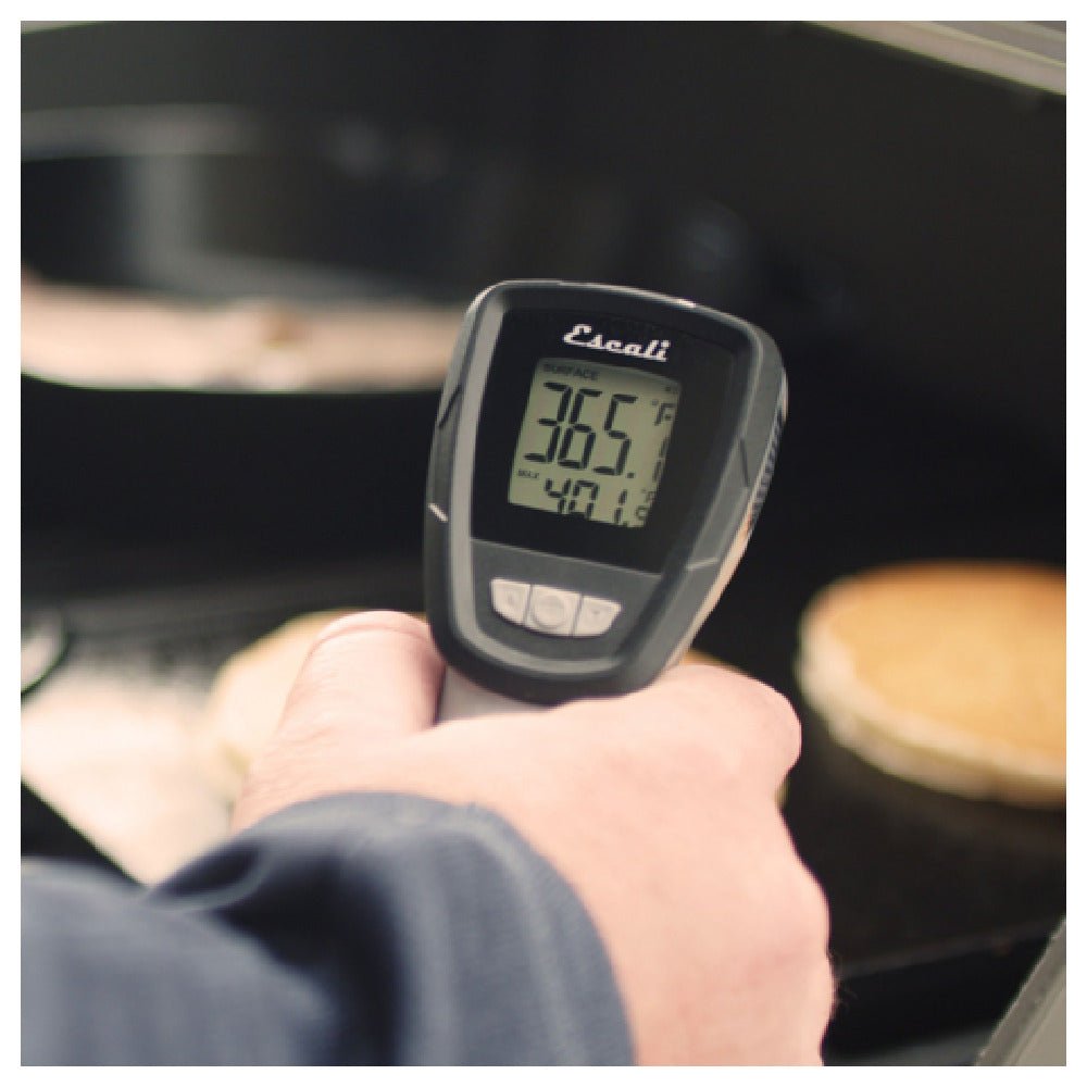 The CFS Brands THDGIF San Jamar Escali Infrared Surface With Probe Digital Thermometer is a precision measurement tool designed for professional foodservice environments. This 2-in-1 device ensures accurate surface temperature readings and internal food temperatures with a stainless steel probe, ideal for commercial kitchen operations. It features an infrared surface temperature range of -58°F to 662°F (-50°C to 350°C) and probe measurements from -4°C to 572°C (-20°F to 300°F), supporting diverse culinary and safety applications. Its compact design integrates high-performance infrared and probe functionalities for precise monitoring in busy foodservice settings.