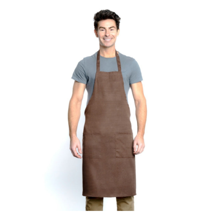 Chef Approved 167601BACBR 34 Inch Bib Apron with 2 Front Pockets Brown Poly-Cotton