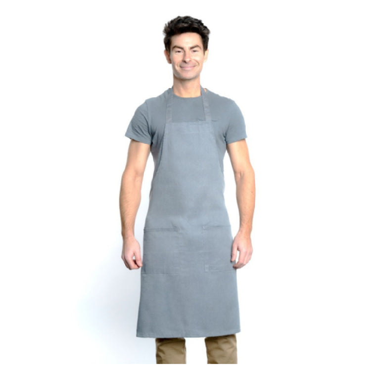 Chef Approved 167601BACGR 34 Inch Bib Apron Gray Two Front Pockets