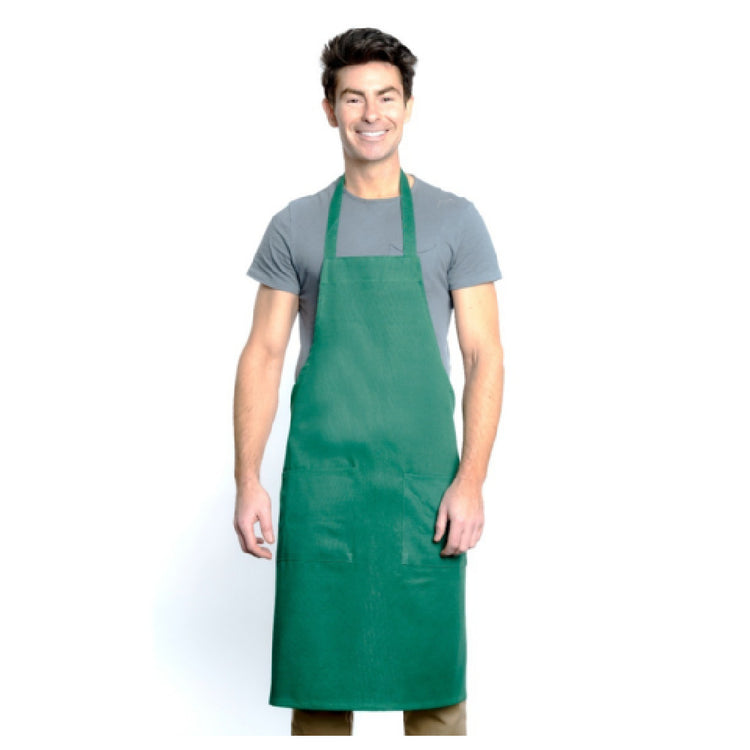 Chef Approved 167601BACKG 34 Inch Bib Apron with 2 Front Pockets Kelly Green Poly-Cotton