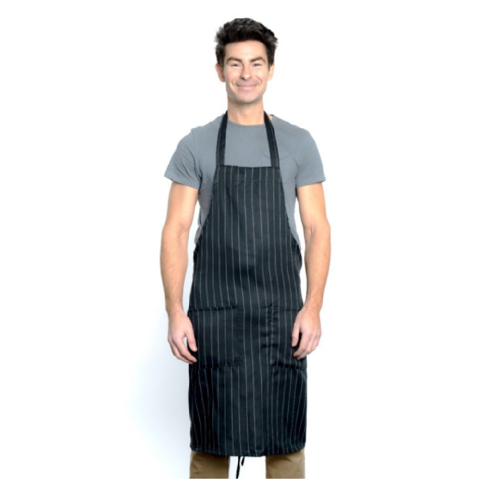 Empura's 167601BACPIN bib apron stands out with its high-quality poly-cotton blend fabric, proven durability, and functional design tailored for professional foodservice. Its lightweight, stain-resistant material and ample front pockets facilitate seamless workflow, while the classic pin stripe adds a professional appearance. The apron's machine washable construction ensures quick turnaround times, reducing operational overhead compared to heavier, less functional options.