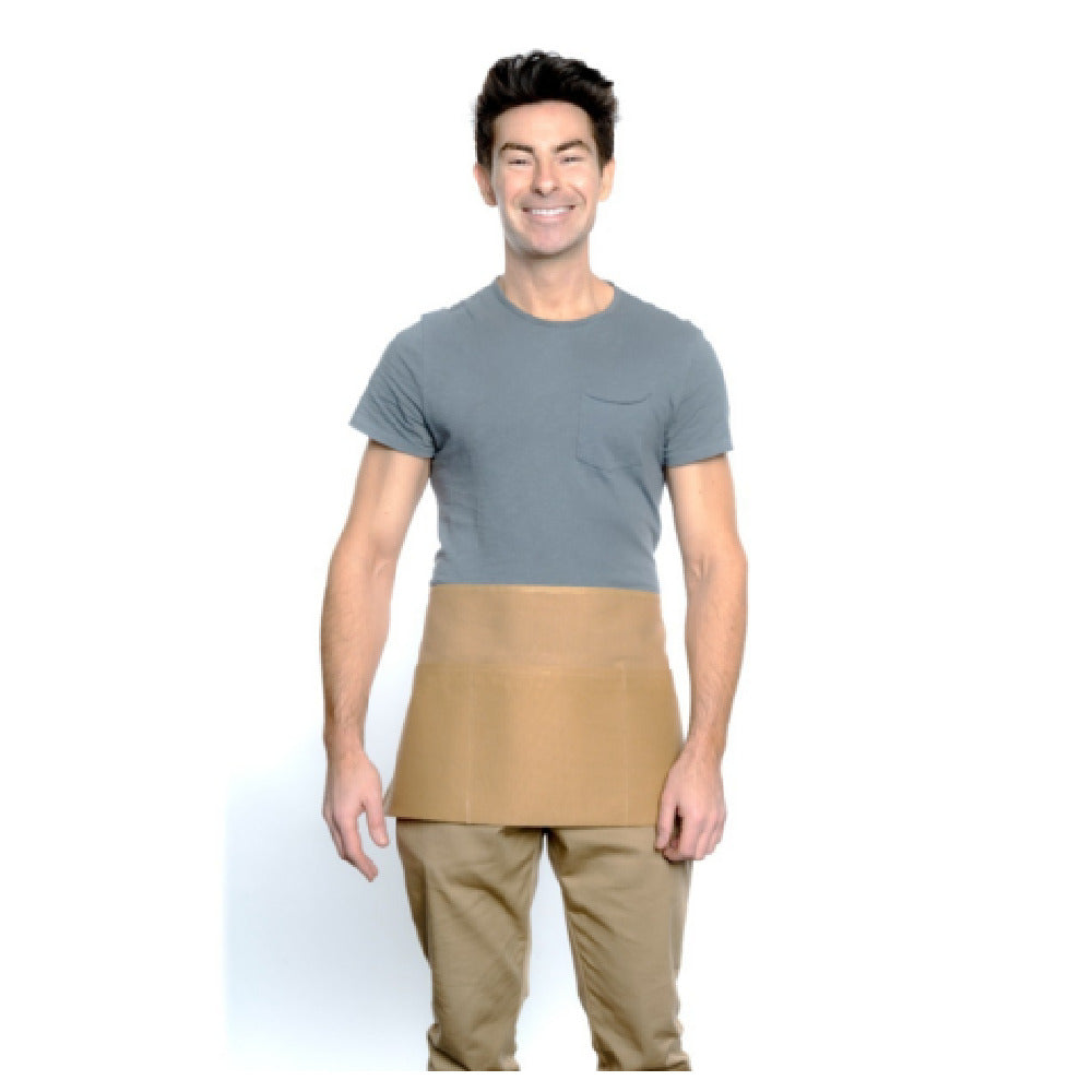 The waist apron offers functional storage with three front pockets, optimized for quick access during food prep and service. Its 65/35 poly-cotton fabric provides tear resistance and color retention, reducing replacement costs in busy kitchens. The apron’s machine washable design ensures effortless cleanup, maintaining sanitation standards. Its precise dimensions (12" x 24") grant adjustable coverage, fitting a range of body sizes for comfort during extended shifts. Designed for mid-volume restaurant workflows, it enhances operational efficiency by supporting tool organization and quick garment maintenance.