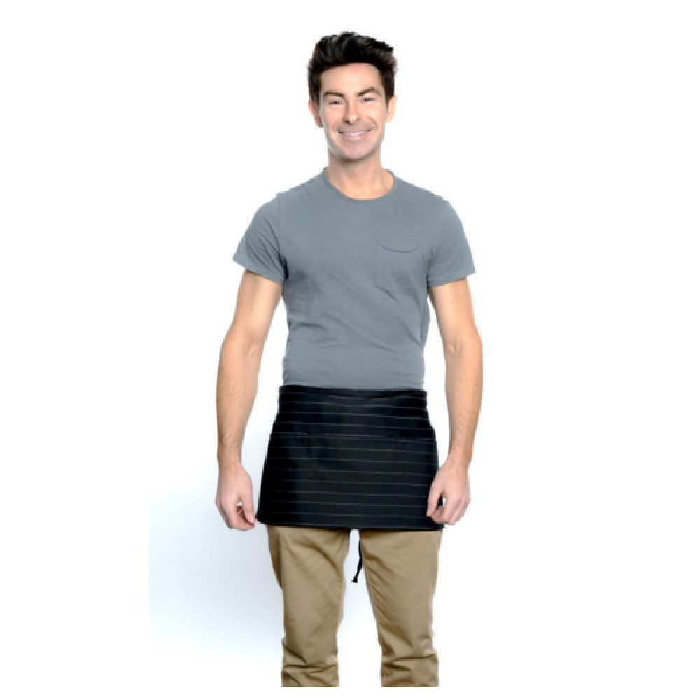 Chef Approved 167605WAFHPIN 12 Inch Waist Apron Pinstripe 3 Front Pockets Poly-Cotton