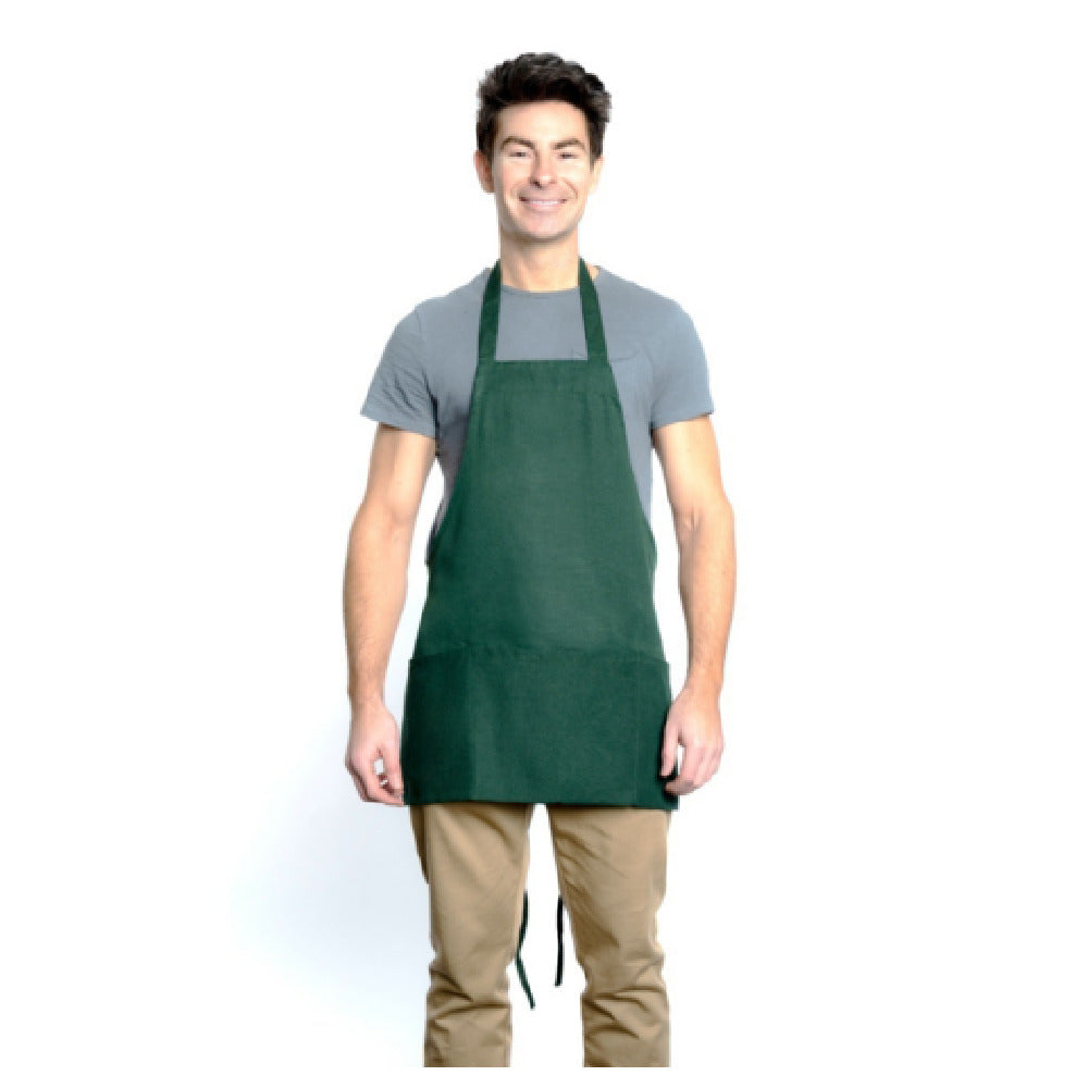 Chef Approved 167BAFHHG 25 Inch Bib Apron Hunter Green with 2 Pockets 65/35 Poly-Cotton