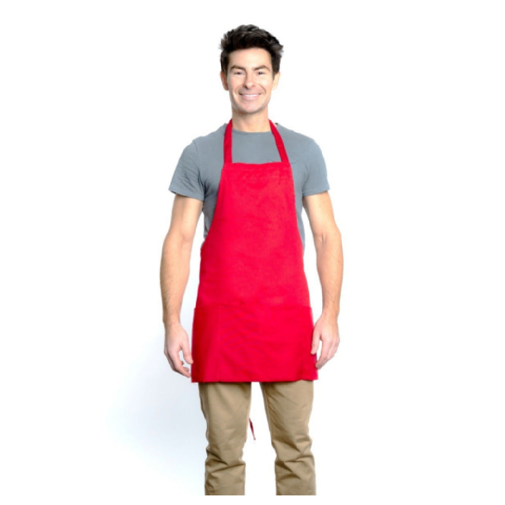Chef Approved 167BAFHRD 25 Inch Bib Apron with 2 Front Pockets Red Poly-Cotton