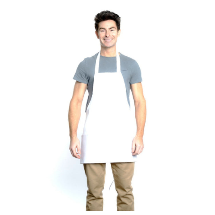 Chef Approved 167BAFHWH 25 Inch Bib Apron White with 2 Pockets Poly-Cotton Blend