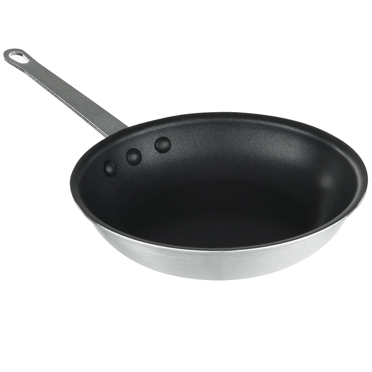 A commercial fry pan is a high-performance cookware item designed for use in professional kitchens for precise sautéing, browning, and frying tasks. Made from durable metals like aluminum or stainless steel, these pans often feature non-stick coatings such as Xylan NS for food release and ease of cleaning. Commercial fry pans come in various sizes, typically up to 12 inches, and are built to withstand frequent, intensive use. The Chef Approved 224350 fry pan exemplifies this category with its 8-inch size, aluminum construction, and non-stick coating, making it suitable for high-volume food preparation environments, including prep stations and small-batch cooking in busy foodservice operations.