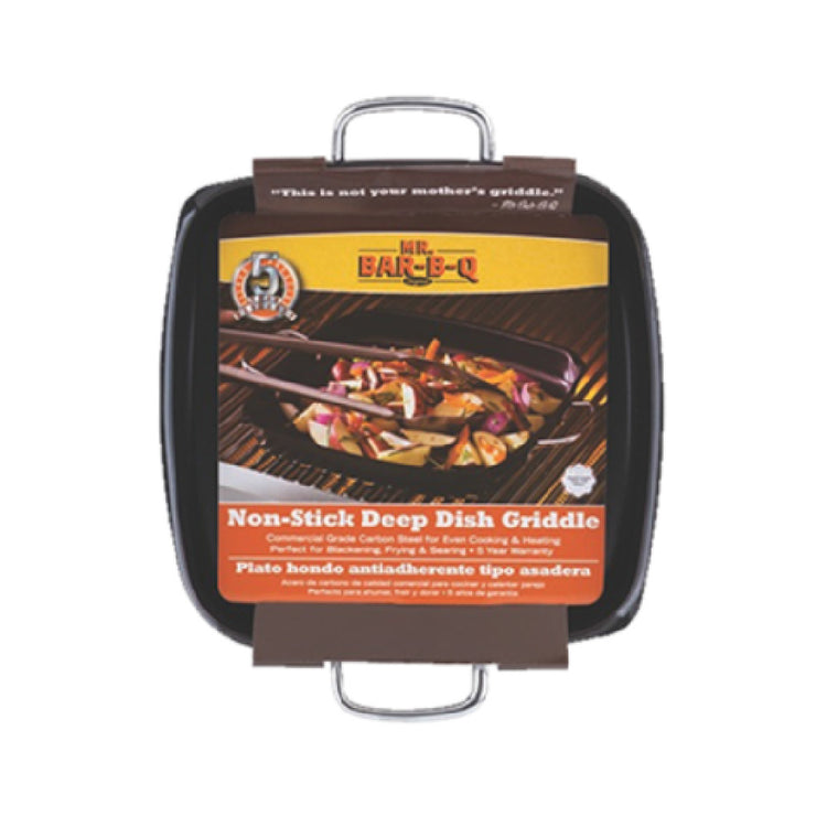 A commercial griddle is a heavy-duty cooking appliance designed for high-capacity food preparation in professional kitchens. It features a flat or deep surface made from durable materials like carbon steel, optimized for even heat distribution and sustained performance. Installed in restaurant kitchens, food trucks, or catering setups, the Chef Master 06100YNS Mr. Bar-B-Q® Classic Prestige Griddle provides a 14-inch deep dish surface ideal for cooking a variety of foods efficiently, supporting mid-volume foodservice demands with a robust construction suitable for continuous use.