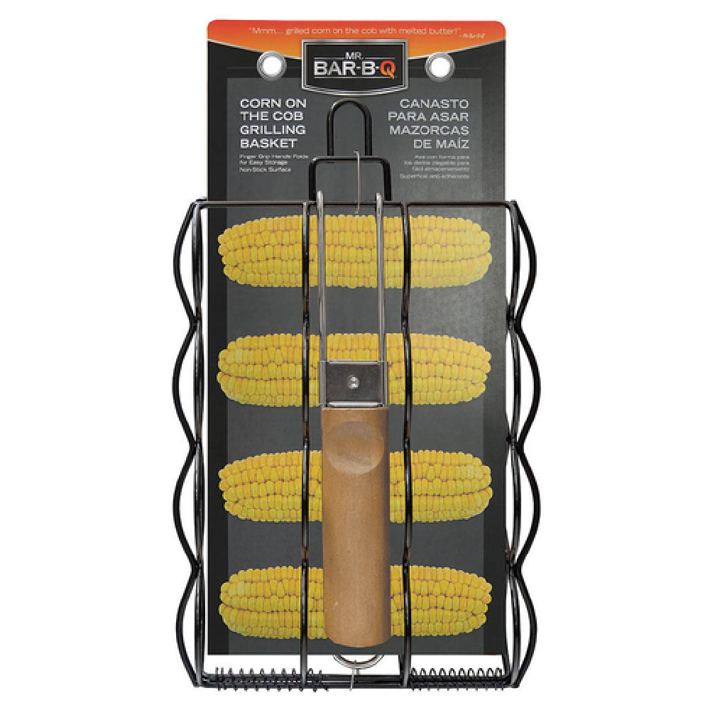 The Chef Master 06633Y Mr. Bar-B-Q® Corn Cobb Grilling Basket provides a secure enclosure for whole corn cobs, allowing for consistent grilling performance. Its steel wire construction ensures long-term durability under demanding commercial use, while the wooden handle offers heat resistance and ergonomic handling. Designed for professional chefs and catering operators, this basket simplifies corn grilling, reduces charring variability, and promotes uniform cooking. Its precise dimensions accommodate multiple cobs simultaneously, optimizing throughput during peak service hours.