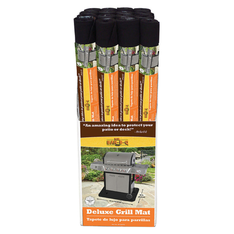 The Chef Master 40125YFD Mr. Bar-B-Q® Grill Mat Large Rolled is a durable, high-performance accessory designed for commercial outdoor grilling environments. Manufactured by Chef Master, this large rolled mat combines PVC and polyester materials to provide an effective barrier against grease, drippings, and food spatter. Its floor display design facilitates bulk handling and easy deployment, making it suitable for professional foodservice operations. The product features a thickness optimized for heat resistance and durability, ensuring longevity under rigorous use. Specifically engineered for high-volume outdoor barbecue setups, this grill mat enhances workflow efficiency while protecting underlying surfaces from stains and damage. Its technical specifications include a weight of 22.44 lbs, a rolled form factor for ease of storage, and compatibility with commercial grilling activities.