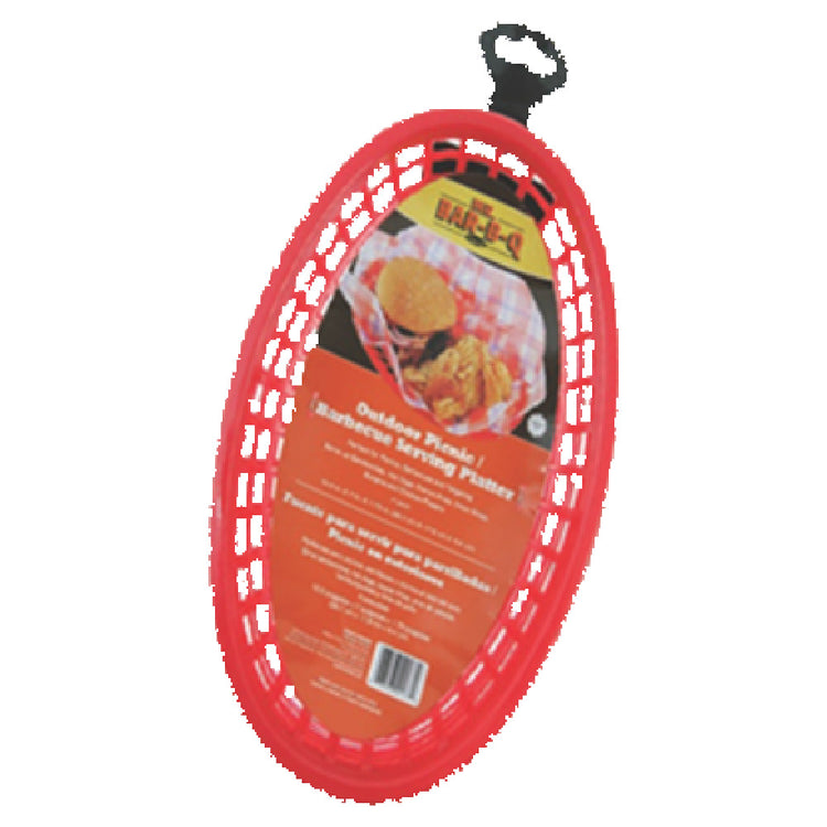 The Chef Master 40177X Mr. Bar-B-Q® Serving Platter is a durable, high-quality foodservice display solution designed specifically for outdoor picnic and BBQ environments. Made from resilient plastic, it features an oval shape with a vibrant red finish, optimized for stainless steel commercial food presentation. This serving platter is engineered to handle heavyweight foods and frequent cleaning cycles while maintaining a professional appearance. Its technical specifications include a configuration suited for outdoor settings with a capacity suitable for proportioned food portions, making it ideal for mobile catering, outdoor restaurant patios, or event catering operations needing reliable serviceware.