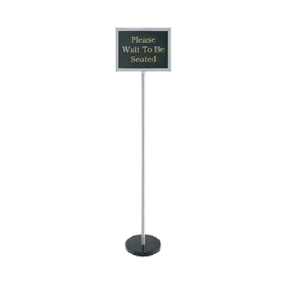 The Chef Master 90038 freestanding sign combines robust construction with versatile messaging capabilities, suited for commercial kitchens, dining halls, and hospitality facilities. Its steel pole and aluminum frame ensure durability against daily use, while the dual-sided signs enable quick message updates. Designed for ease of maintenance, the high-quality P.V.C. signs resist wear, and their store-within-frame design simplifies replacement. This unit enhances communication workflows by enabling clear, prominent signage in high-traffic areas, supporting efficient customer and staff directions with minimal downtime.