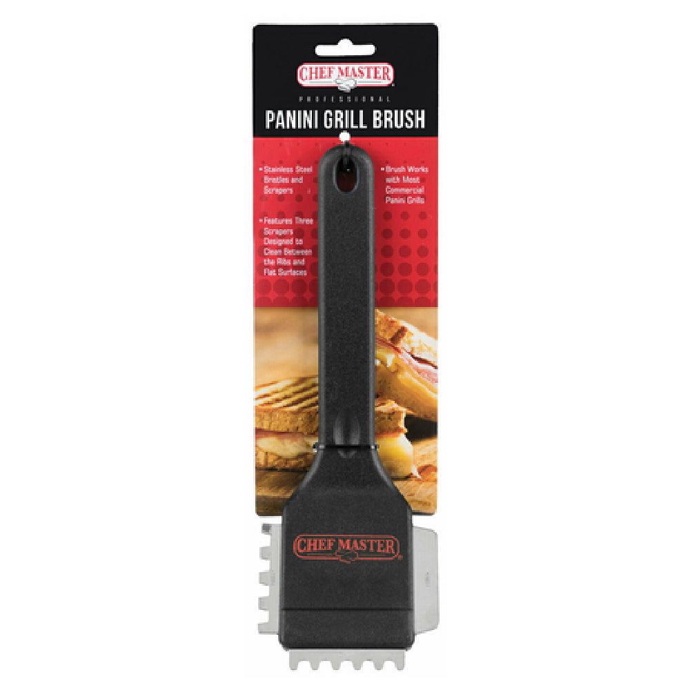 Chef Master 90052 9-1/2 Inch Panini Grill Brush with Stainless Steel Bristles and Scrapers