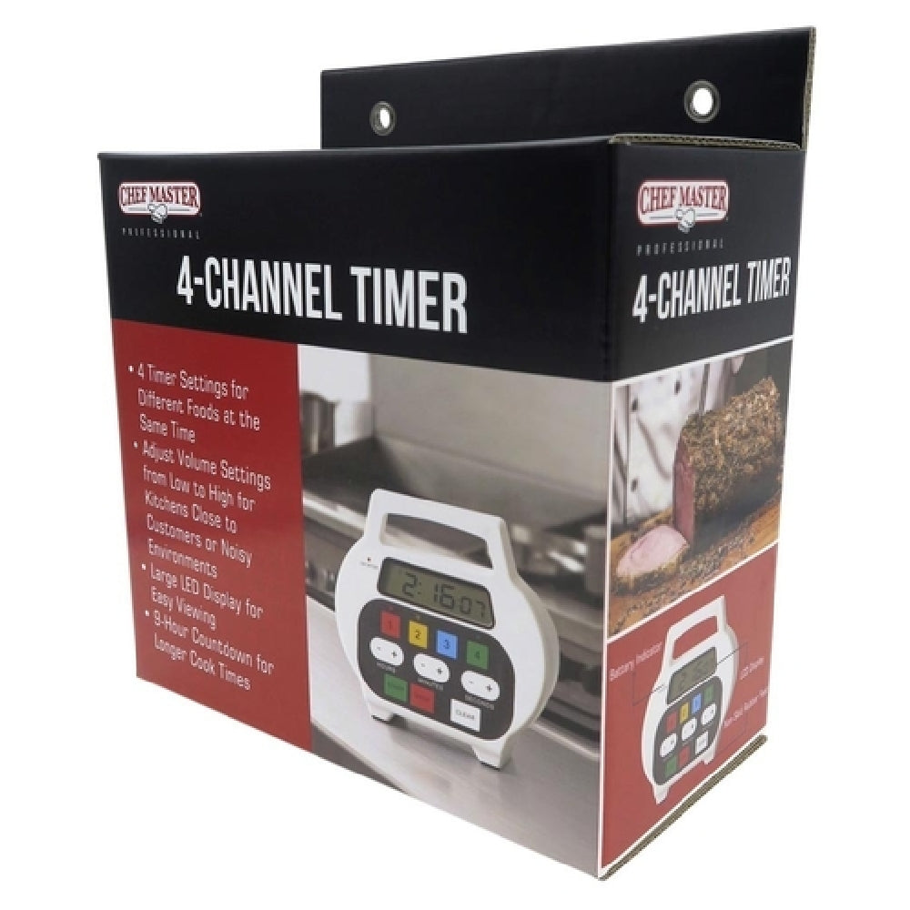 Chef Master 90218 6-3/10 Inch Digital Timer 4-Channel Water Resistant Plastic