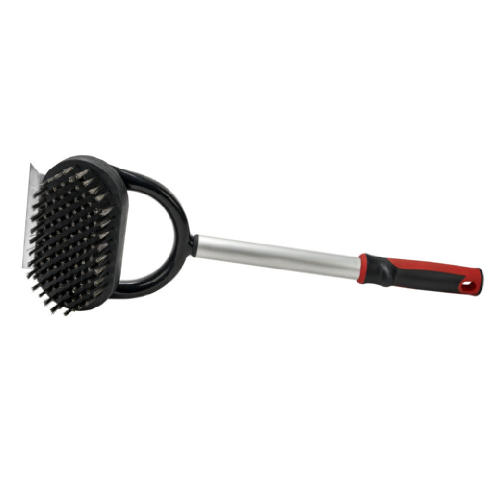 Compared to standard brushes, the Chef Master 90257 offers a large sweeping surface with corrosion-resistant stainless steel bristles and a high-quality aluminum handle, providing superior durability and cleaning efficiency. Its scraper enhances grease and residue removal, reducing cleaning time and improving sanitation. Designed specifically for professional foodservice environments, this brush supports high-frequency usage and long-term performance without sacrificing ease of handling or effectiveness.
