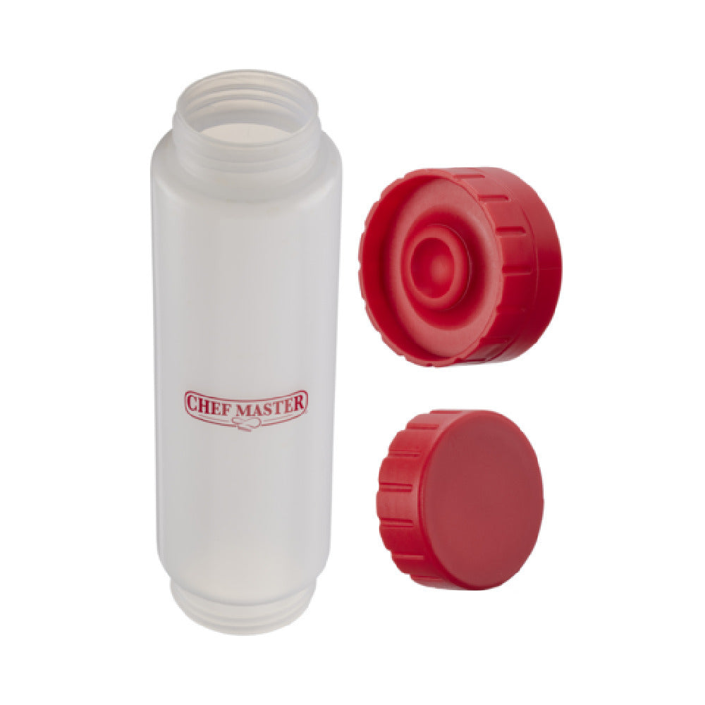 Compared to similar commercial squeeze bottles, the Chef Master 90290 model offers superior durability with its impact-resistant polyethylene construction and secure, easy-to-refill screw caps. Its large 16 oz. capacity enhances workflow efficiency by reducing frequent refills. Compact and straightforward to clean, these bottles are designed for optimal performance in high-frequency dispensing environments, ensuring consistent ingredient flow and presentation quality in busy foodservice establishments.