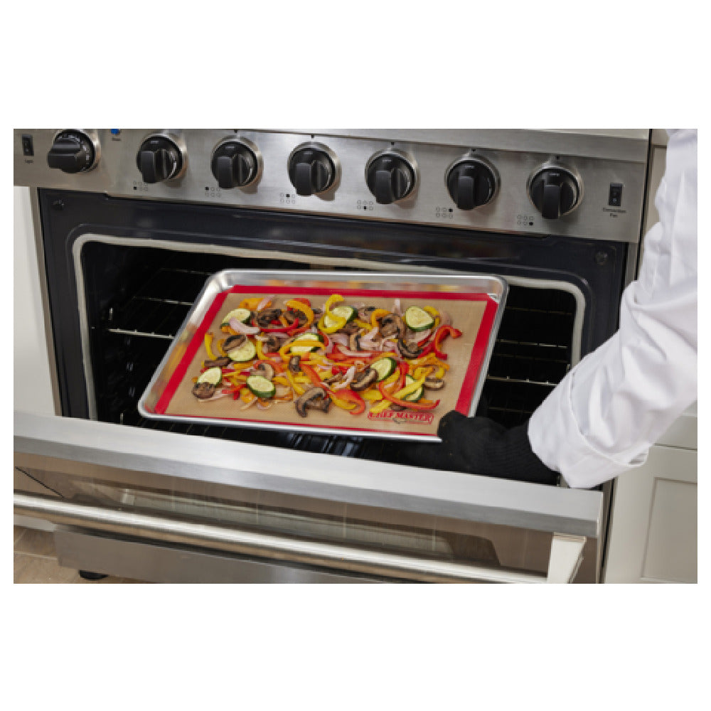 This commercial baking mat offers superior durability, precise dimensions, and high-temperature stability, making it suitable for baking operations in bakery, pastry, and catering environments. Chef Master 90310 provides an efficient, non-stick surface to support medium-volume workflows, installed in convection or deck ovens for consistent results. Its construction is ideal for demanding commercial applications requiring frequent use and sanitation.