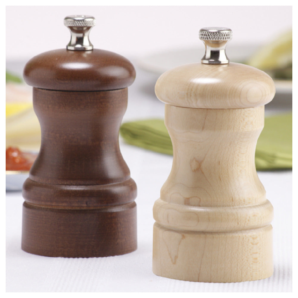 Chef Specialties 04202 4 Inch Salt and Pepper Mill Set with Ceramic and Stainless Steel Grinders Natural and Walnut Finish - 1/Set