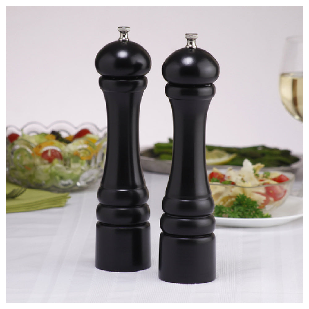 Offering a combination of durable construction, precise grinding mechanics, and an elegant ebony finish, the Chef Specialties 10502 set provides performance benefits unmatched by similar salt and pepper mills. Its made-in-USA quality, no assembly required, and ergonomic design improve operational efficiency while maintaining sanitation and presentation standards in professional kitchens.