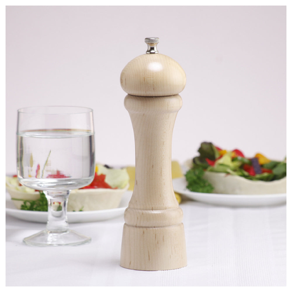 Chef Specialties 8250 8 Inch Stainless Steel Pepper Mill Manual Natural Wood