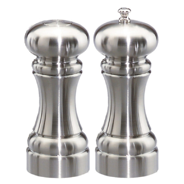 Chef Specialties 94500 5 Inch Ceramic Salt Pepper Shaker Mill Set Acrylic Brushed Chrome Finish - 1/Set
