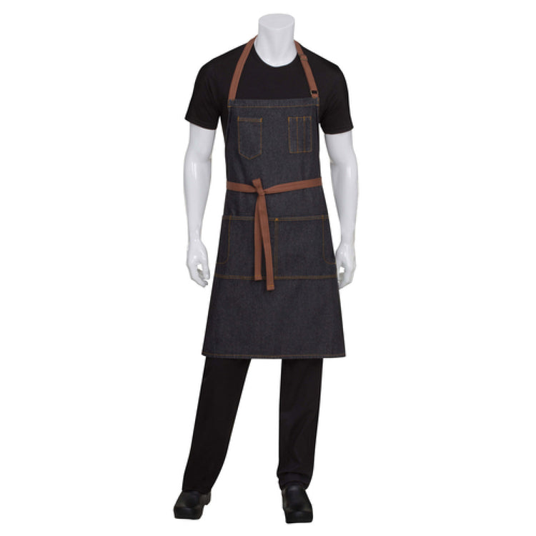 Chef Works AB035-BLK-0 30 Inch Bib Apron with Adjustable Neck Strap Black 100% Cotton Denim