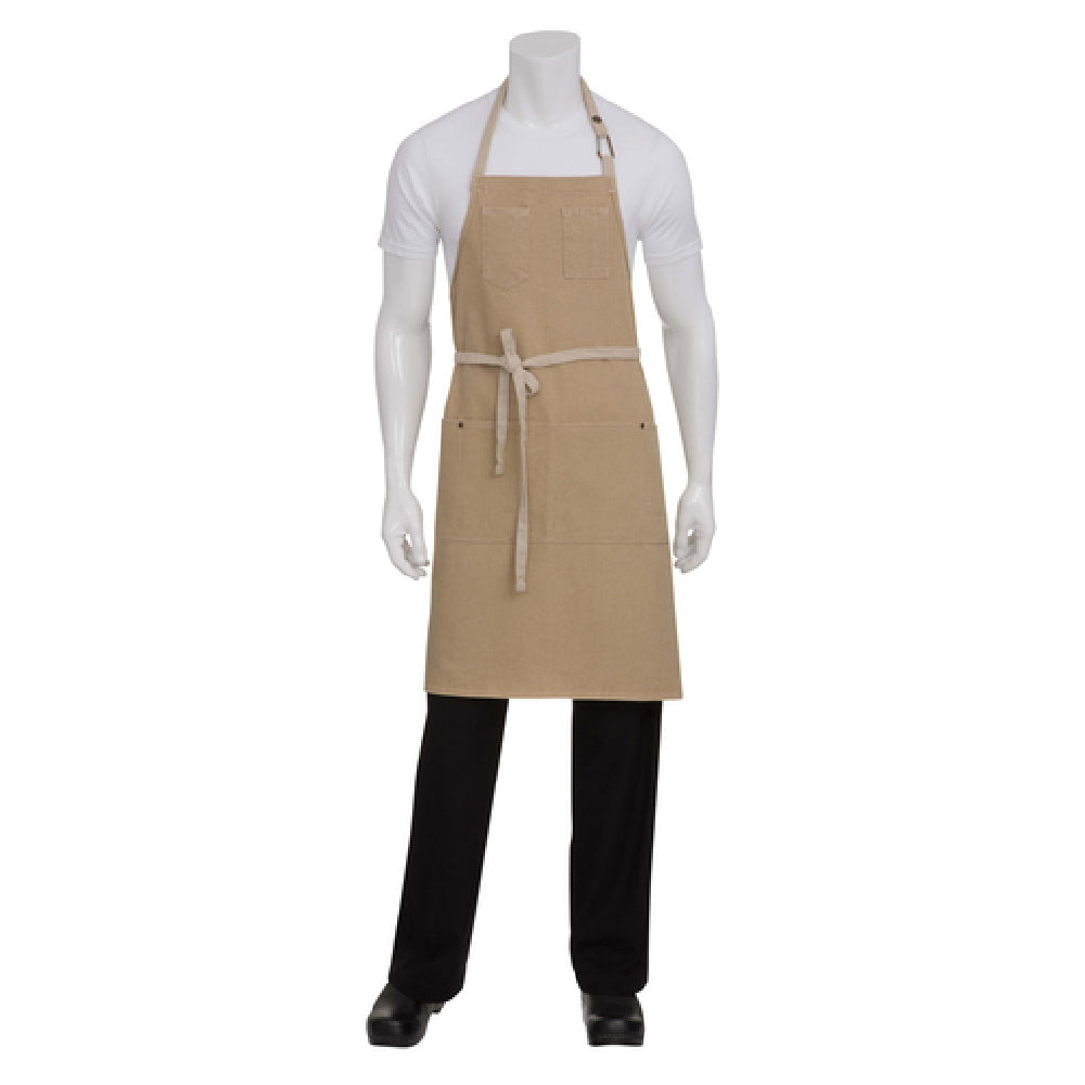 Chef Works ABCD056-NAT-0 30 Inch Bib Apron with Adjustable Strap Khaki Cotton Denim