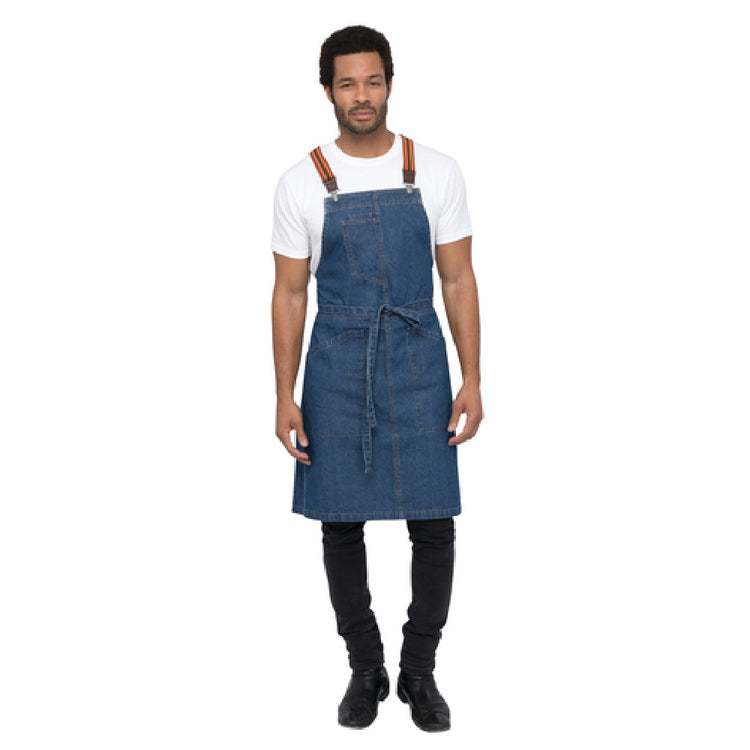 Chef Works, ABS01-MDB-0, Berkeley Bib Apron, 34"L x 30"W, includes suspender set (XNS02-RUC), double right chest pockets, hip pockets with riveted ends, 100% cotton, medium blue