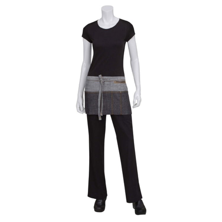 Chef Works AW047-BLK-0 23 Inch Waist Apron Black 100 Percent Cotton Denim with Zipper Hip Pocket
