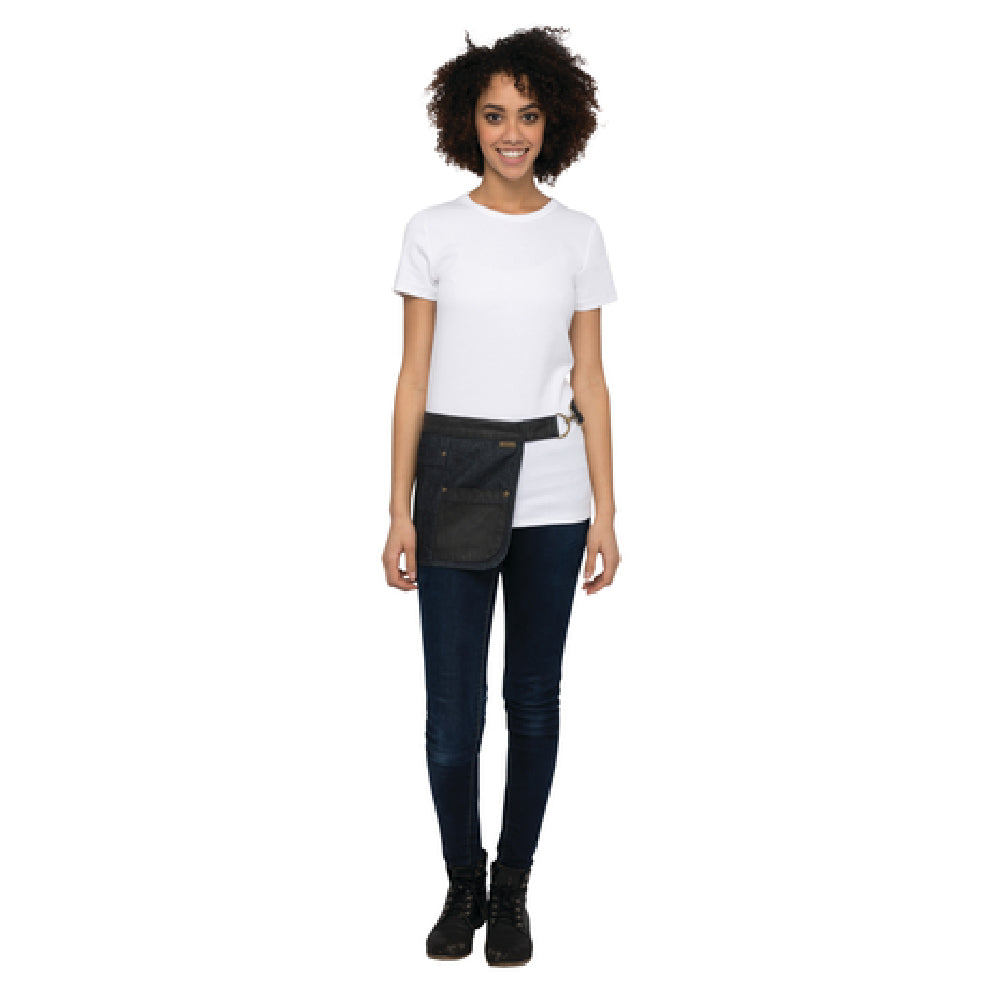 The Chef Works AWKV056-NBK-0 Indy Hipster Apron is a professional-grade waist apron designed for commercial foodservice environments requiring durability, functionality, and organizational efficiency. Crafted from 100% cotton with an artisan finish, this apron measures 11-1/4 inches in length and 15-1/2 inches in width, featuring an adjustable belt with a metal clasp, D-ring, and buckle closure for a customizable fit. Equipped with multiple pockets—including an iPad/notebook pocket, cell pocket, and thermometer/pen pocket—this apron supports workflow with easy access to essential tools while maintaining a sleek appearance. Its riveted ends enhance longevity, making it suitable for fast-paced restaurant settings, cafés, and catering operations seeking reliable apparel with practical storage solutions.