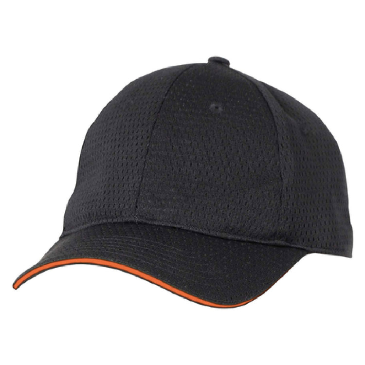 Chef Works, BCCT-ORA-0, Baseball Cap, all over Cool Vent™, contrast color sandwich trim, adjustable buckle closure, 100% polyester, one size fits most, black with orange trim