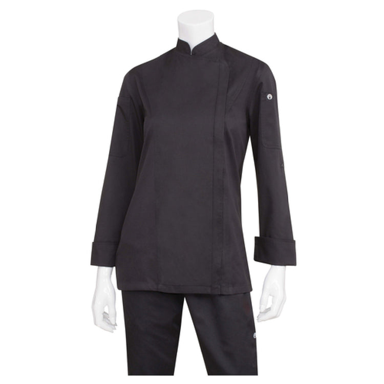 Chef Works BCWLZ005-BLK-M Women's Chef Coat Medium with Long Sleeves and Pockets