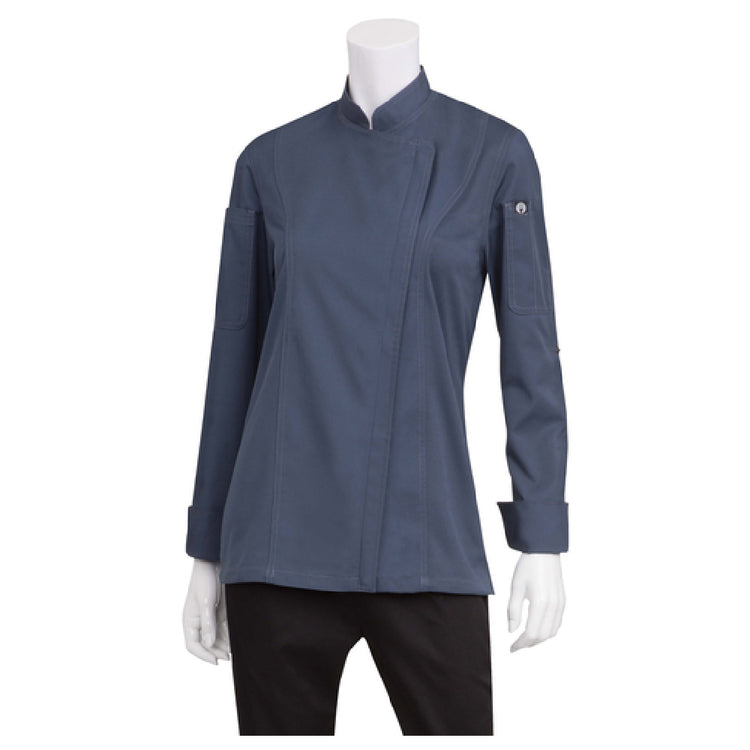 Chef Works BCWLZ005-BLU-XS Women's Hartford Chef Coat Slim Fit Blue Cotton and Poly Twill