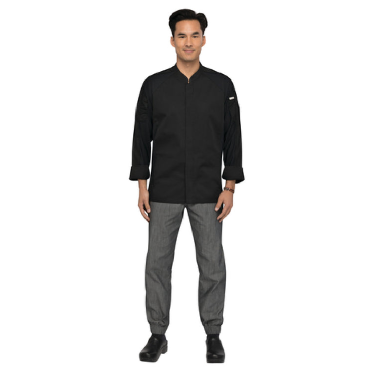 Chef Works CES04-BLK-XL Chef's Coat Long Sleeve Single-breasted Black Cotton Polyester