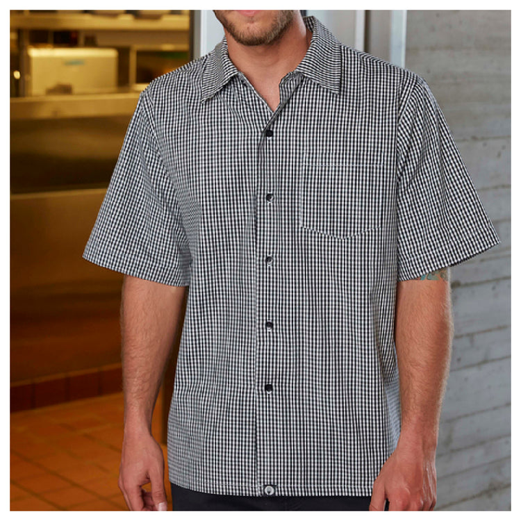Chef Works CSCK-BWC-S Small Cook Shirt Short Sleeve Black Buttons Poly Cotton