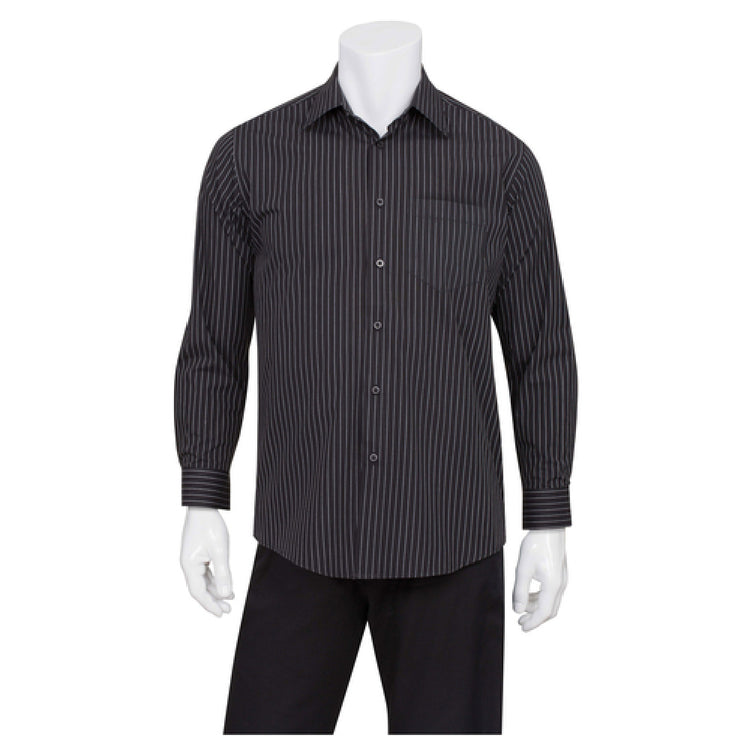 Chef Works, D300-CDA-3XL, Men's Onyx Dress Shirt, long sleeves, adjustable cuffs, built-in collar stays, double back yoke, left chest pocket, classic fit, 65/35 poly/cotton, pinstripe, 3XL
