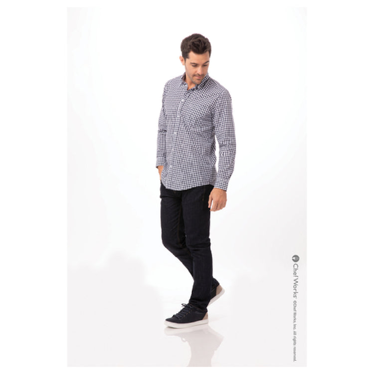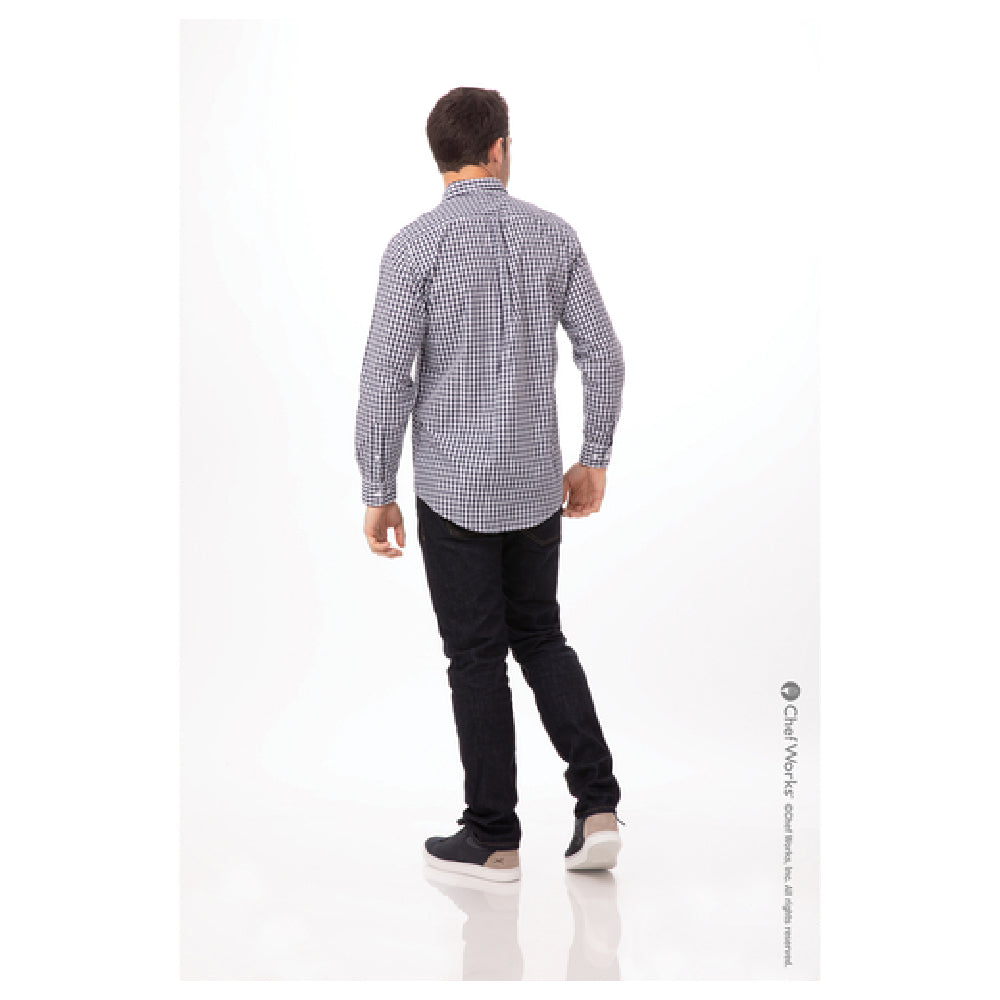 Chef Works D500BWK4XL Men's Gingham Dress Shirt Long Sleeve Poly Cotton