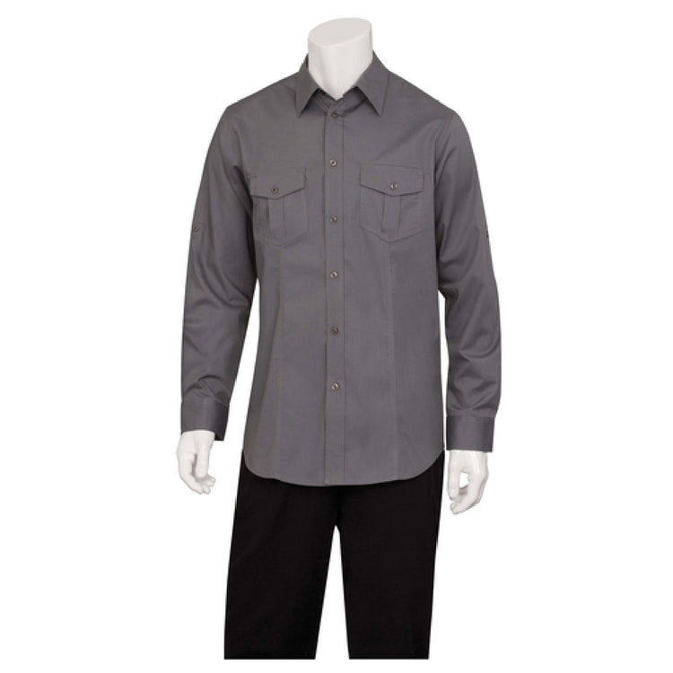 Chef Works DPDS-GRY-S Men's Pilot Shirt Small Roll-up Long Sleeves Gray