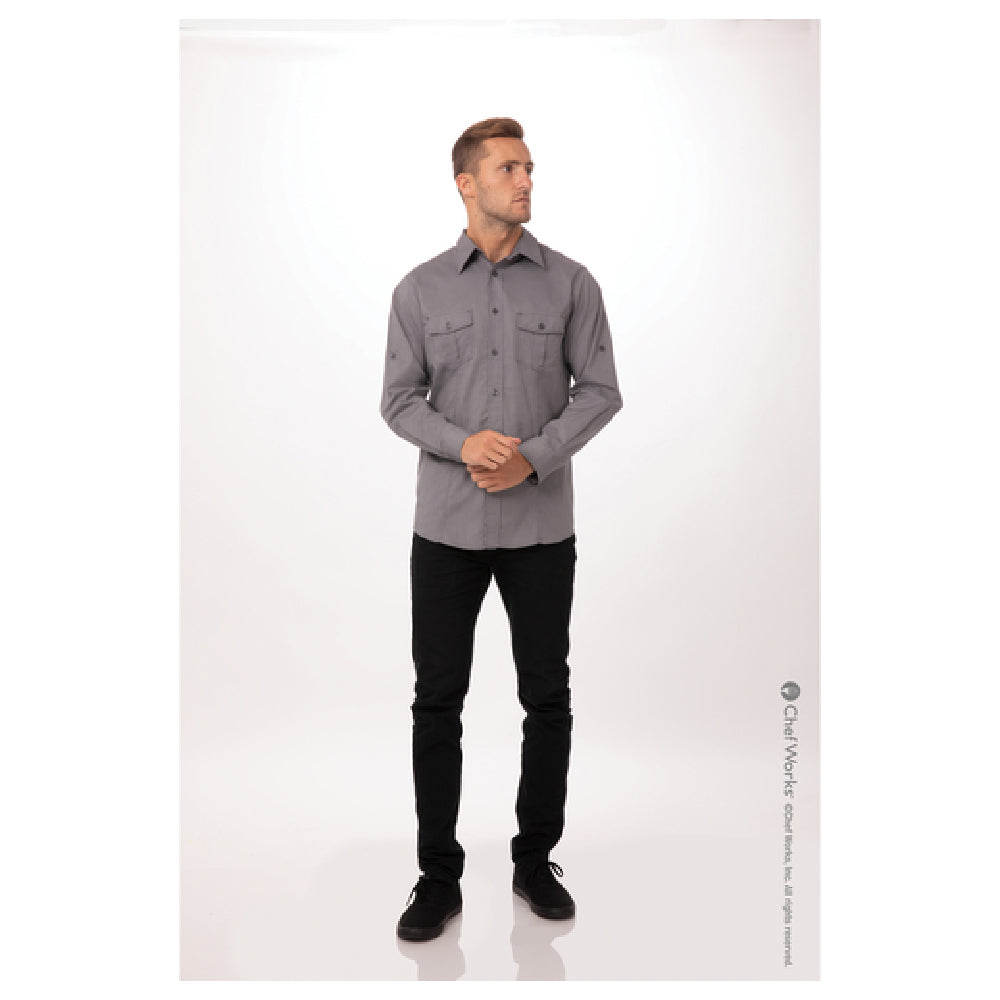 Chef Works DPDSGRY3XL Cooks Shirt Men's Pilot Shirt Gray Roll-up Long Sleeves
