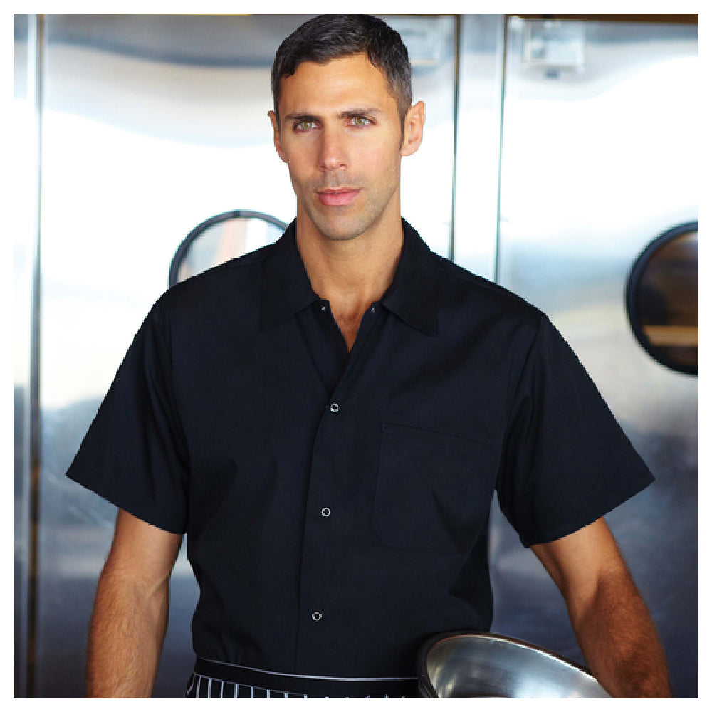Chef Works KCBL-BLK-L Utility Shirt Short Sleeve Black with Metal Snaps